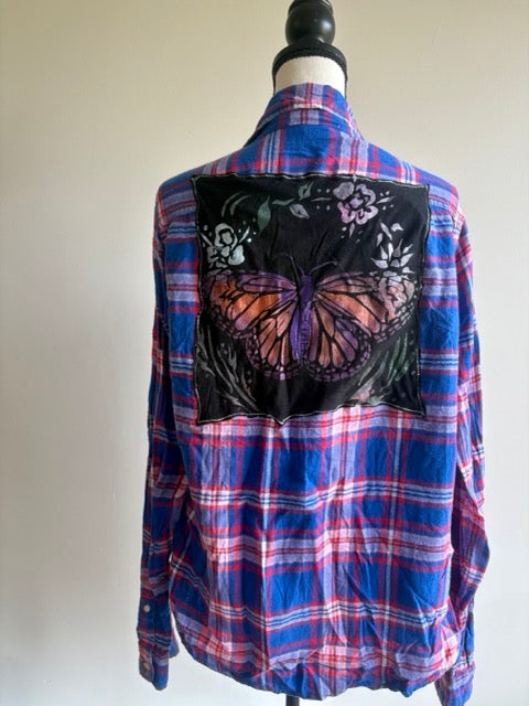 Butterfly - Up-cycled Vintage Flannel - Hand Painted - Unisex L