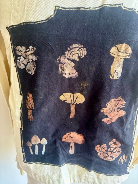 Mushrooms - Original Painting - Denim - Crop Women's S