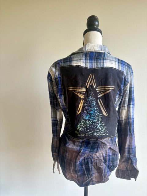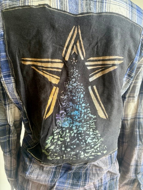 Christmas Tree - Up-cycled Vintage Flannel - Hand Painted - Unisex XS