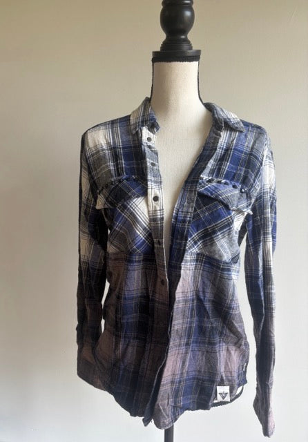 All of the flannels are vintage and up-cycled into a wearable piece of art. They are one of one. It is all my original art and I hand paint the back patches, which are then hand sewn onto the backs of each flannel!