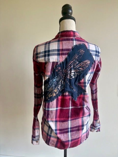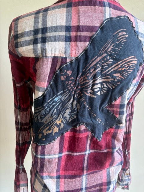 Dragonfly - Up-cycled Vintage Flannel - Hand Painted - Women's L