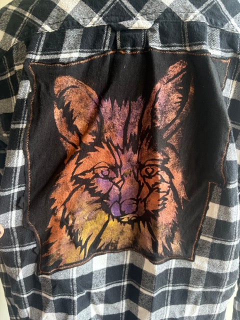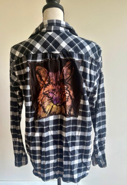 Fox - Up-cycled Vintage Flannel - Hand Painted - Women's L