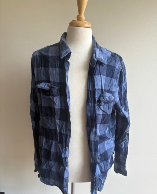 All of the flannels are vintage and up-cycled into a wearable piece of art. They are one of one. It is all my original art and I hand paint the back patches, which are then hand sewn onto the backs of each flannel!
