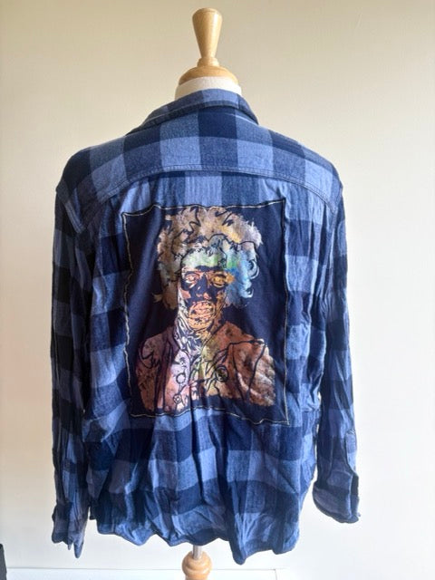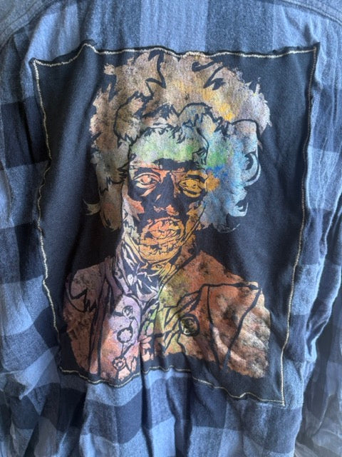 Jimi Hendrix - Up-cycled Vintage Flannel - Hand Painted - Unisex XXL