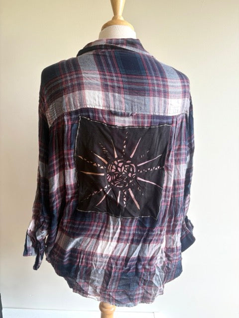 Moons - Up-cycled Vintage Flannel - Hand Painted - Women's XL