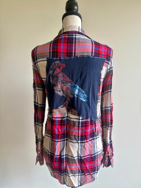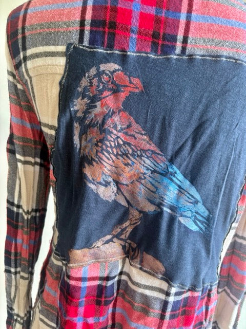 Raven - Up-cycled Vintage Flannel - Hand Painted - Women's S