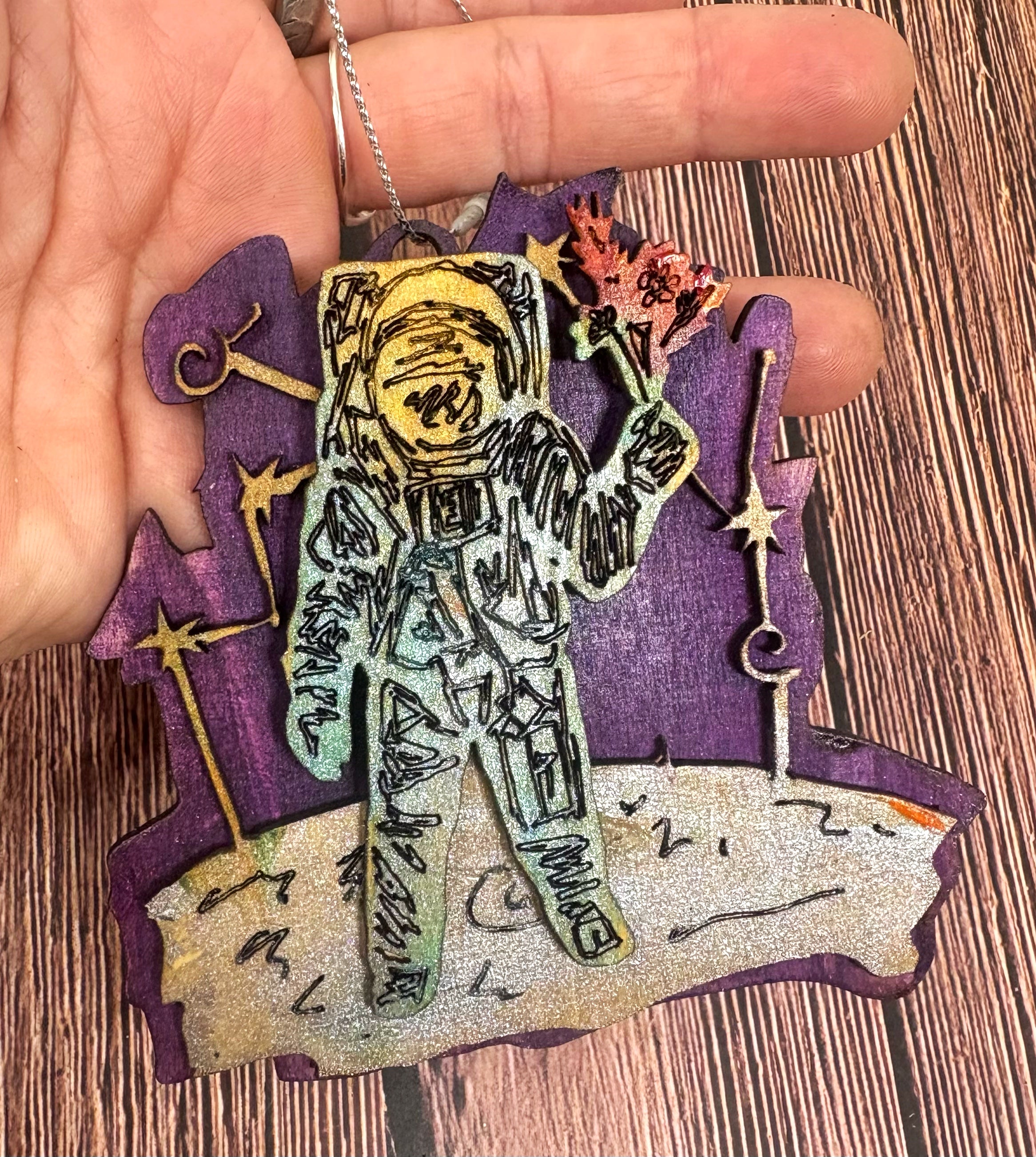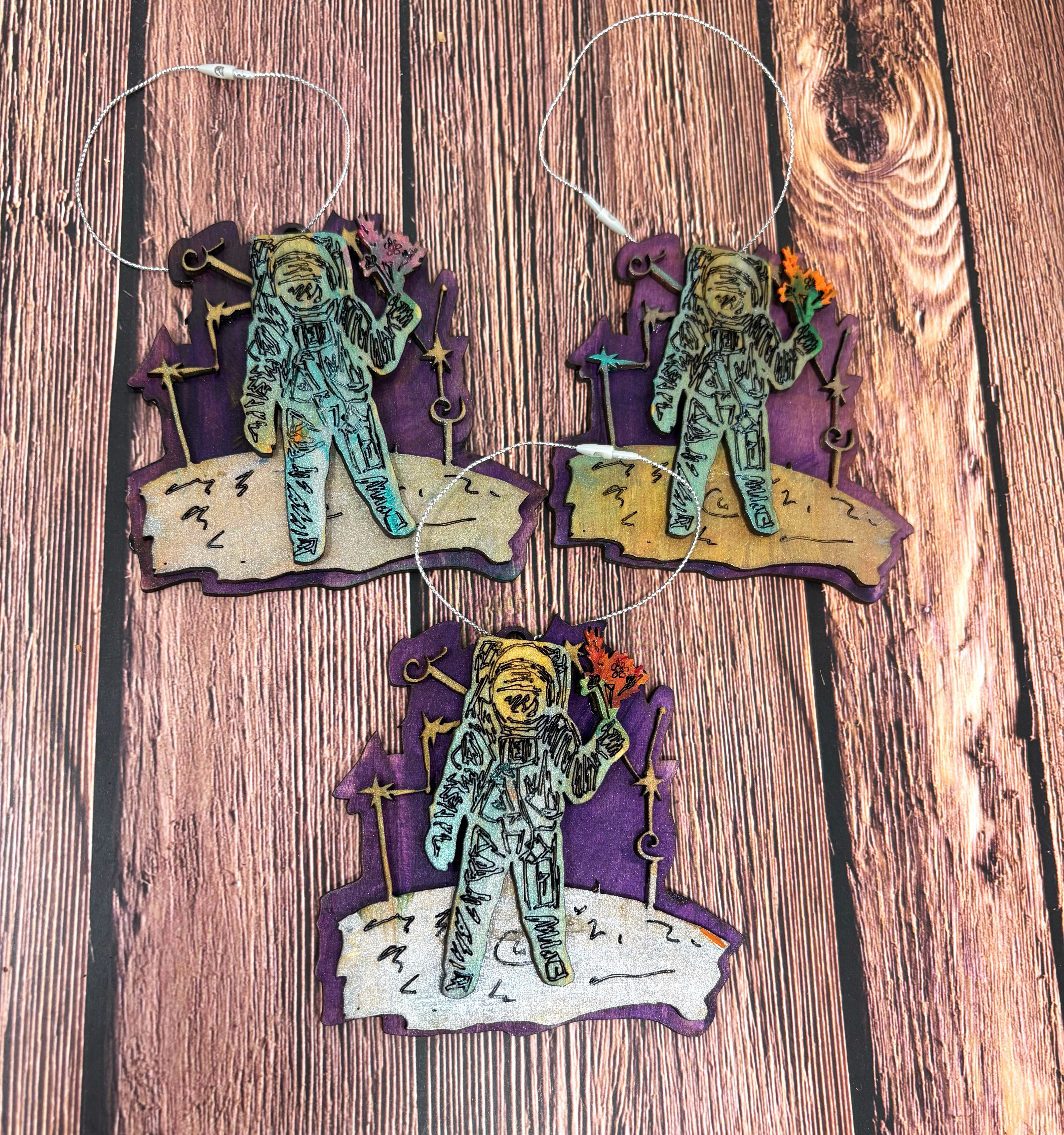 I bought a laser! I hand draw the design of each ornament, send it through a program for the laser to cut, paint the layers, glue the layers and assemble each ornament individually for you!
