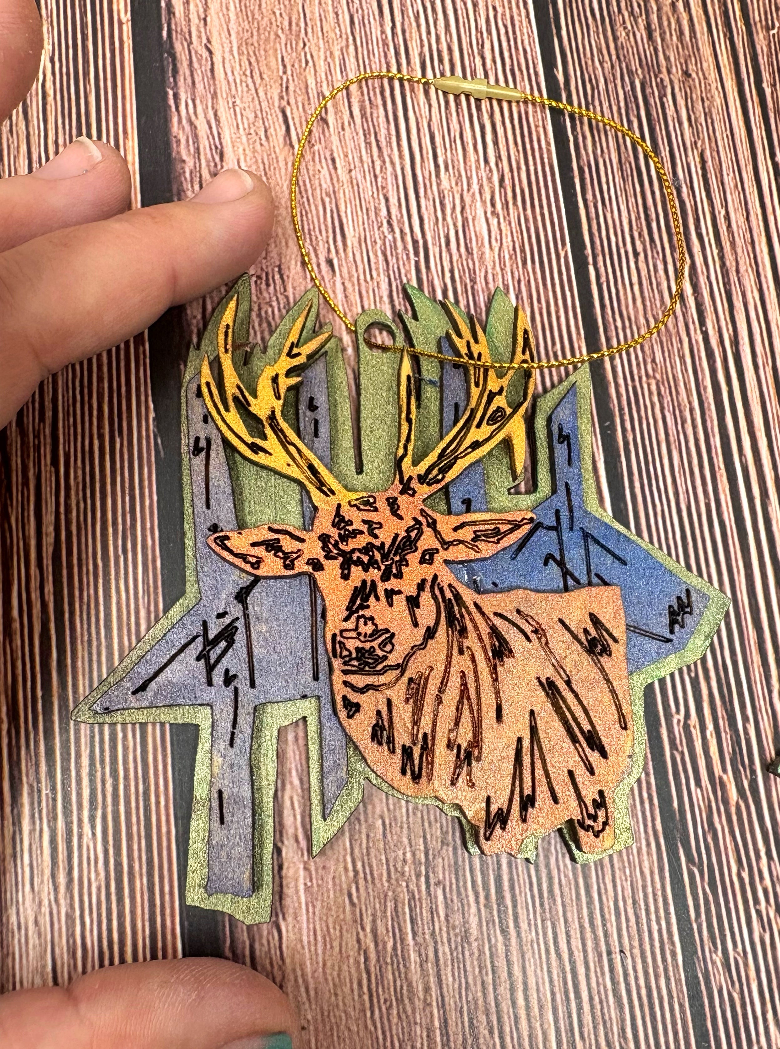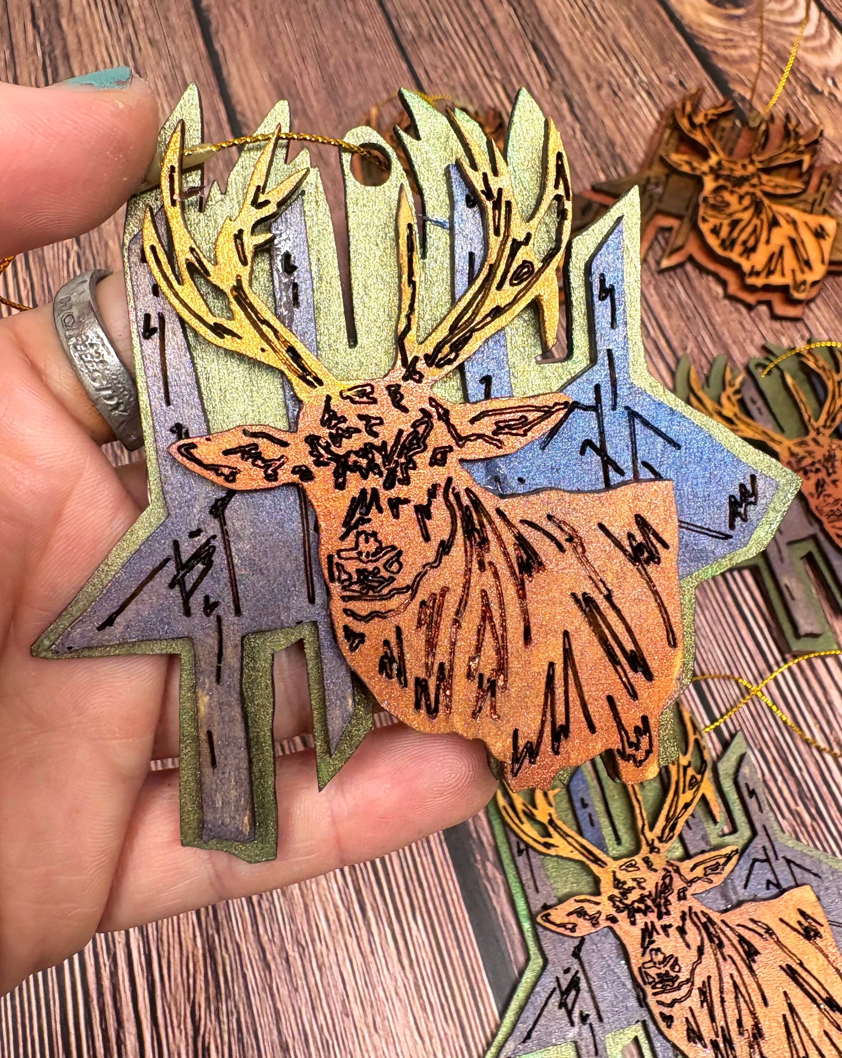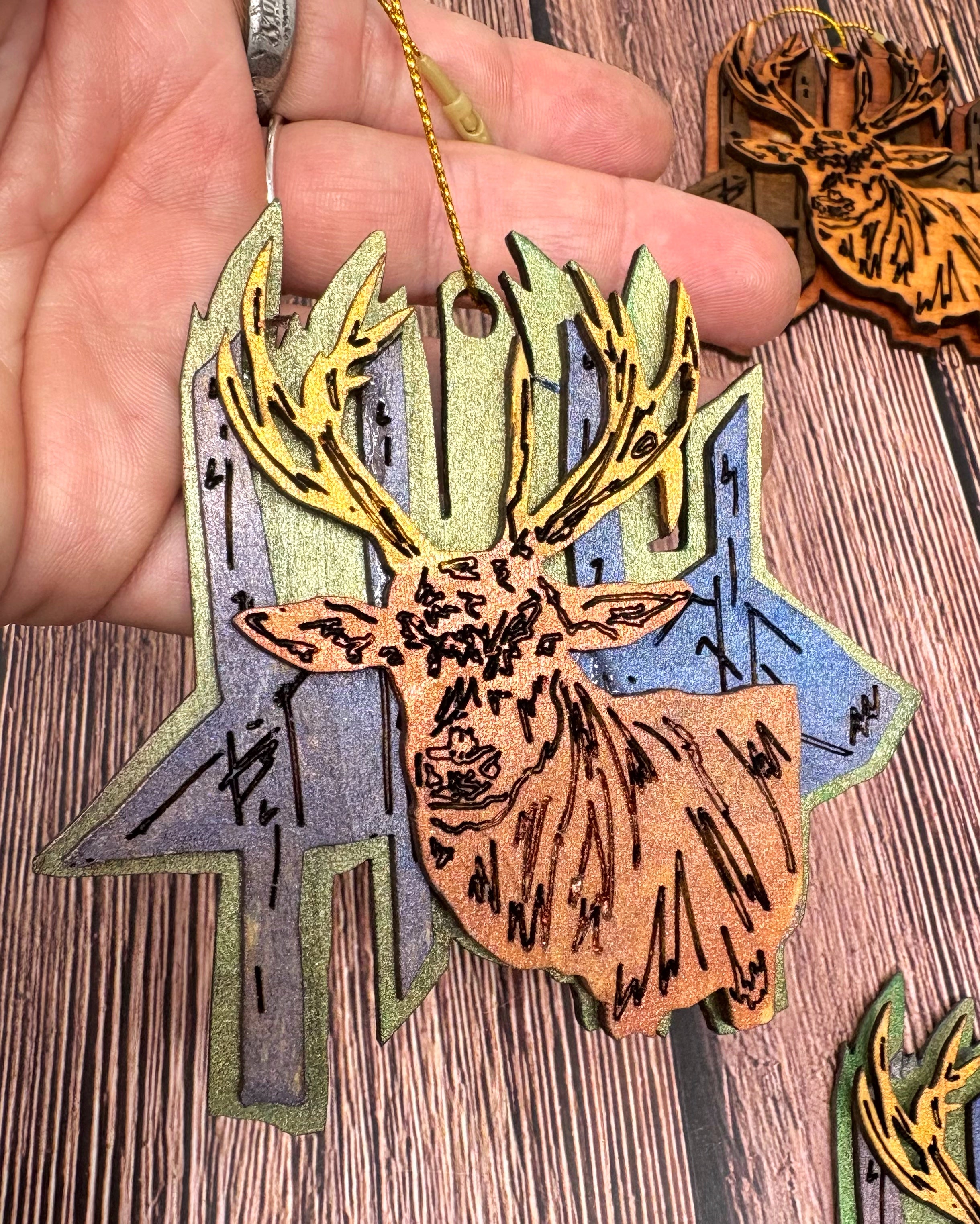 I bought a laser! I hand draw the design of each ornament, send it through a program for the laser to cut, paint the layers, glue the layers and assemble each ornament individually for you!