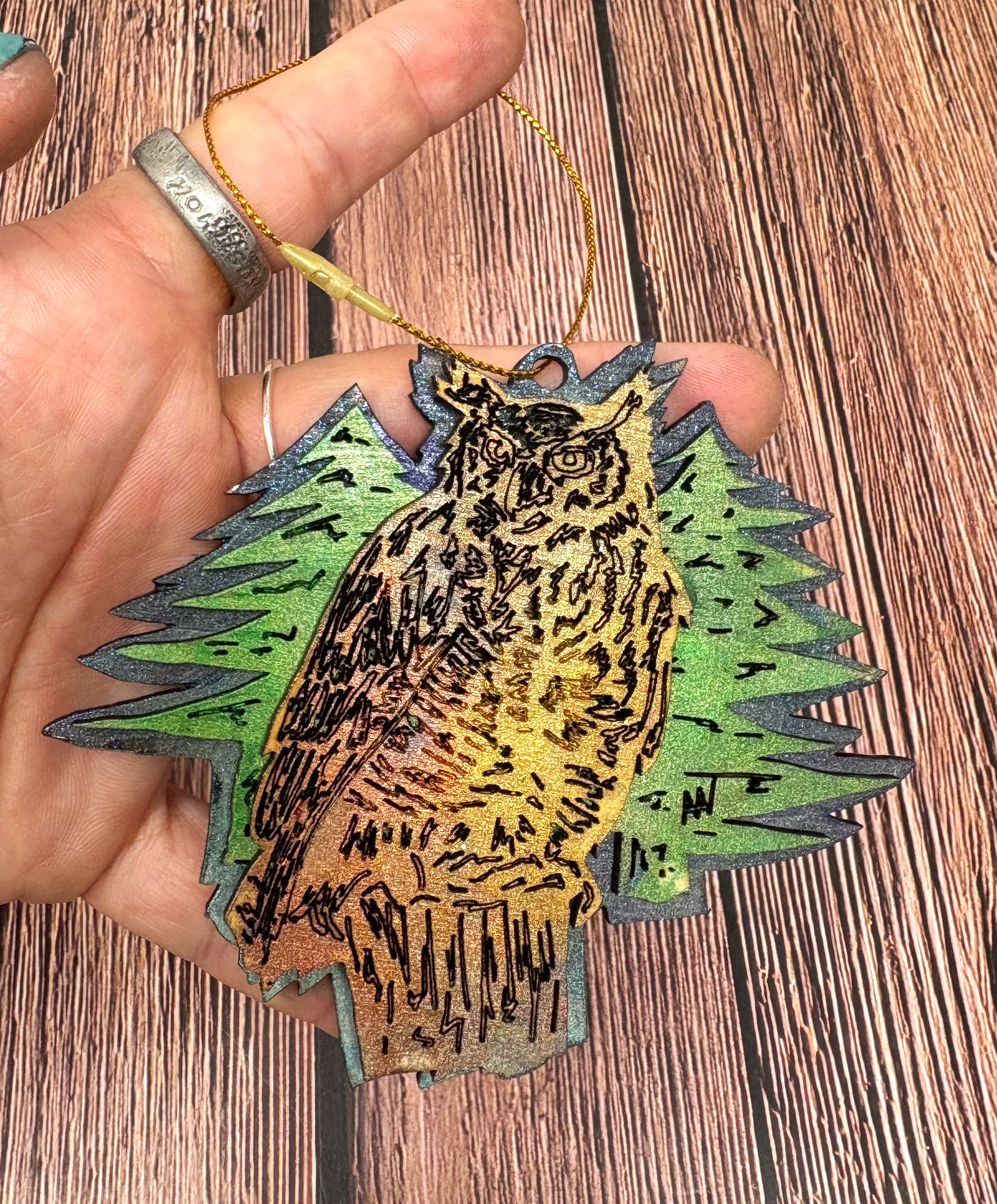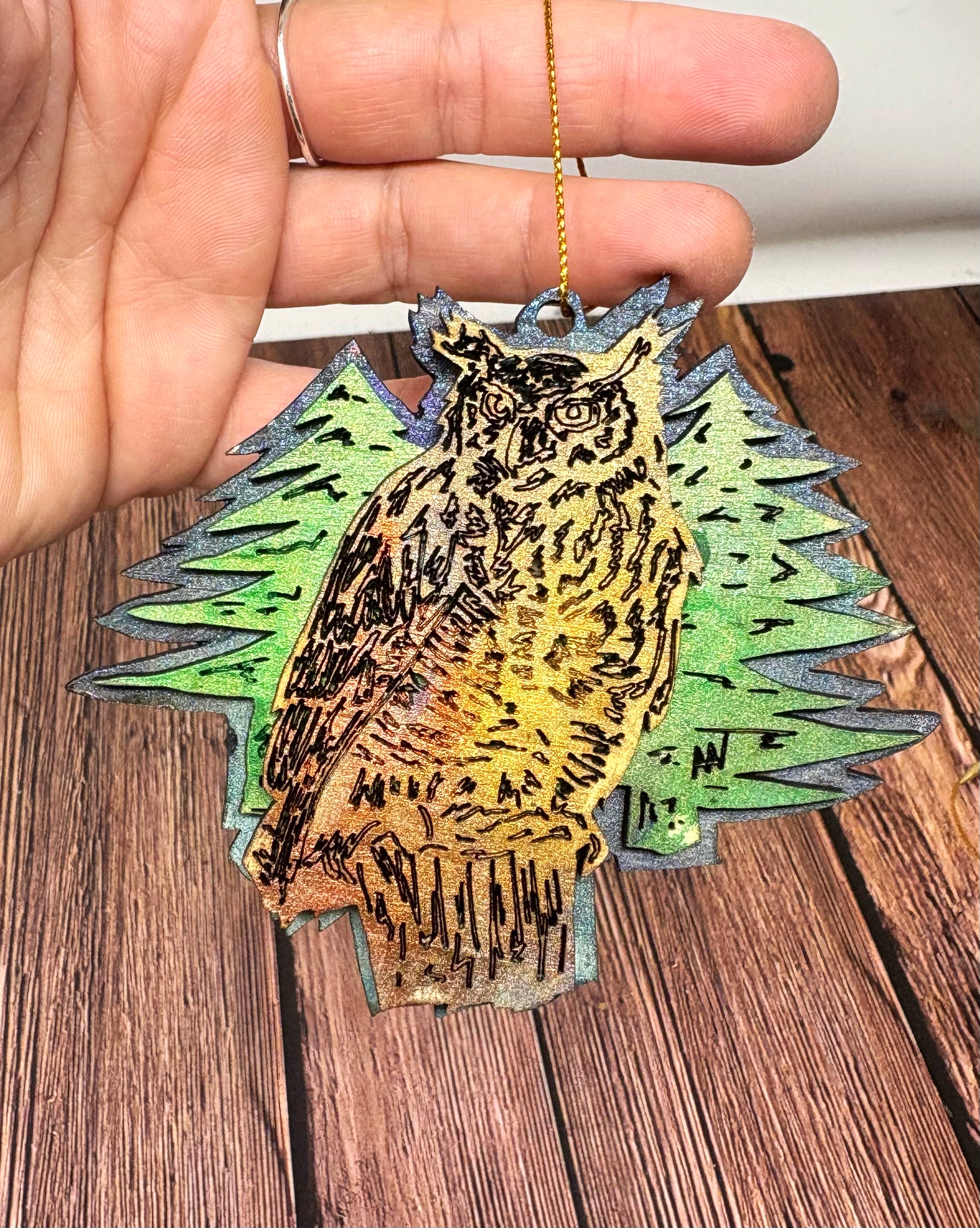 I bought a laser! I hand draw the design of each ornament, send it through a program for the laser to cut, paint the layers, glue the layers and assemble each ornament individually for you!