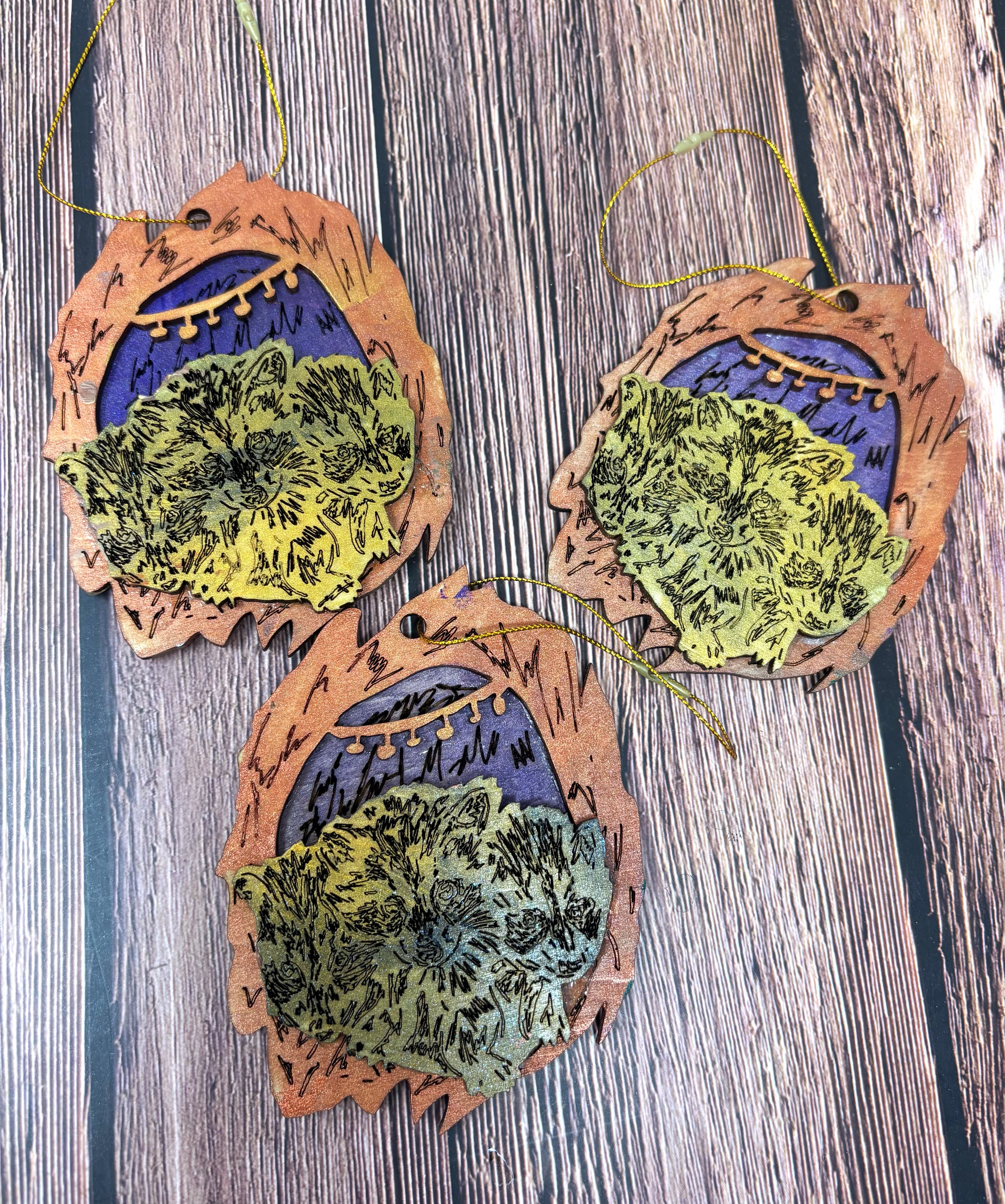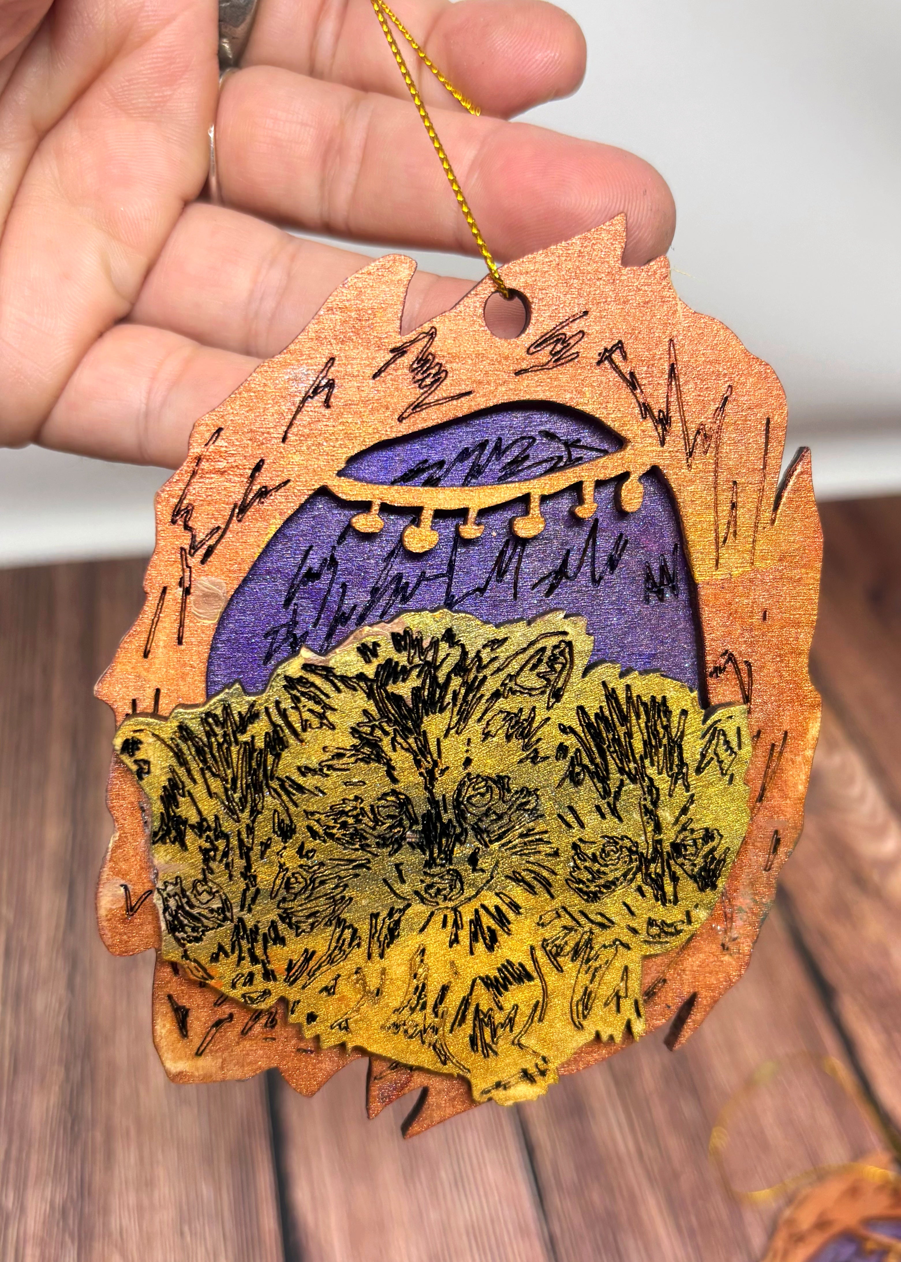 I bought a laser! I hand draw the design of each ornament, send it through a program for the laser to cut, paint the layers, glue the layers and assemble each ornament individually for you!