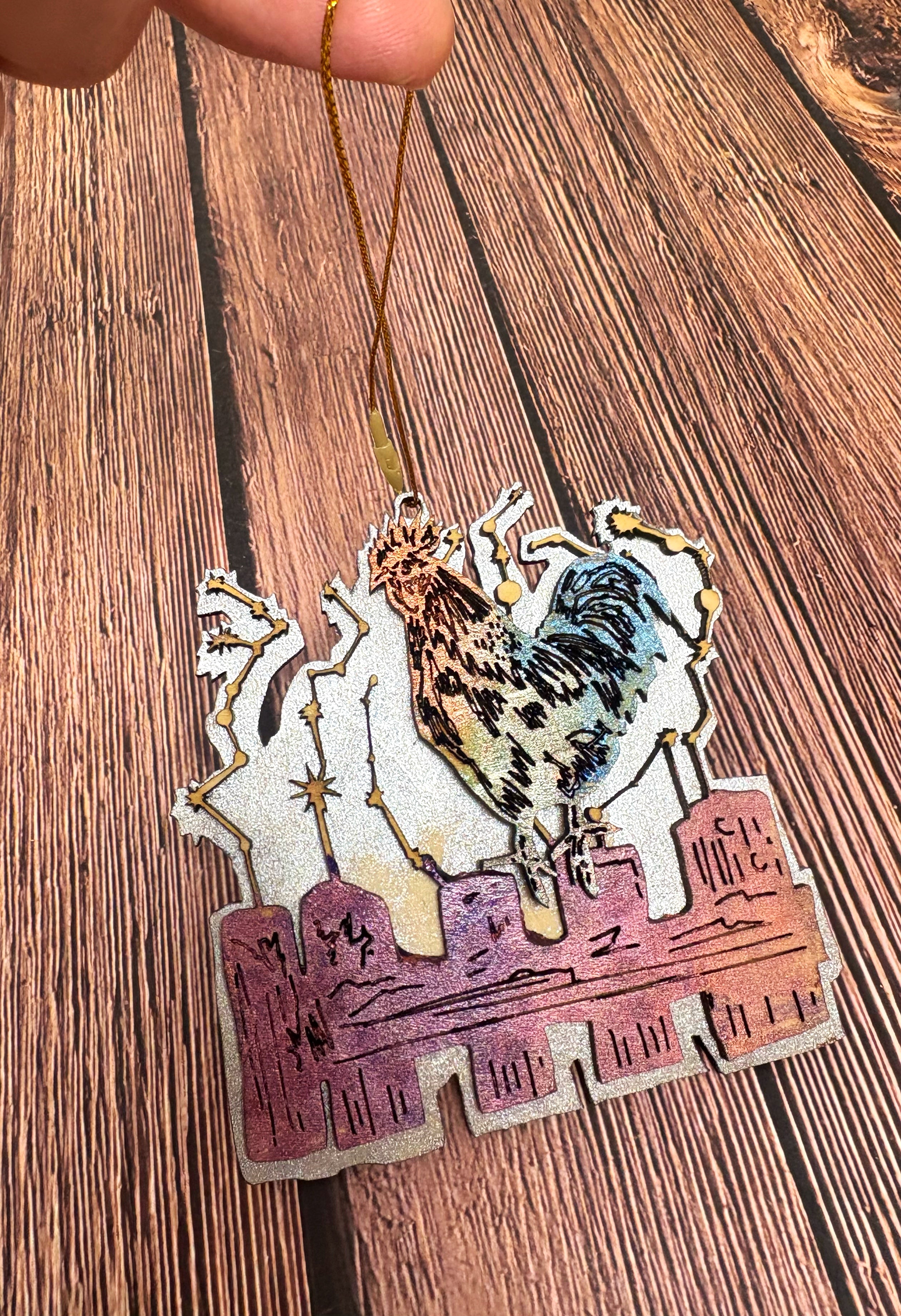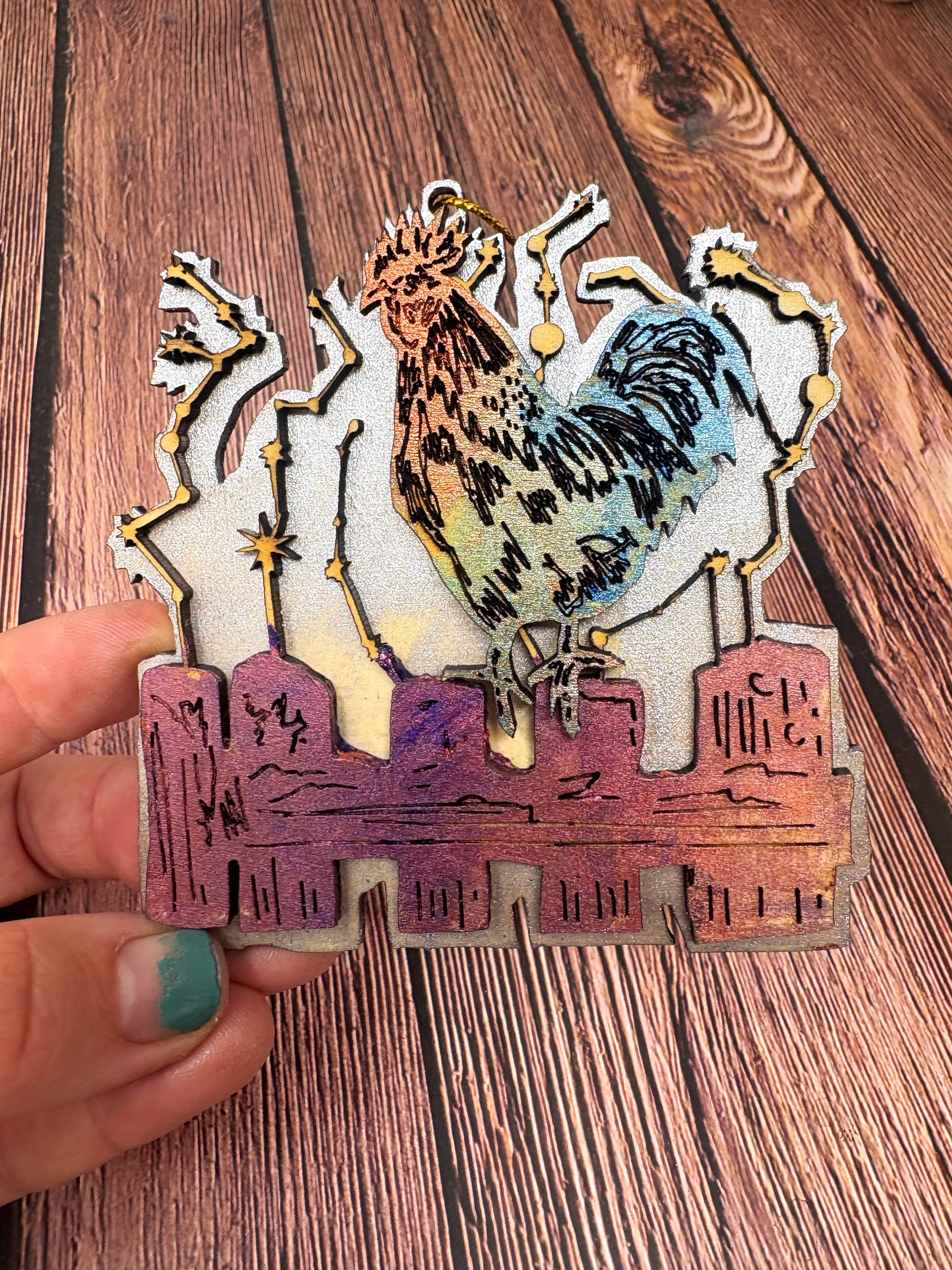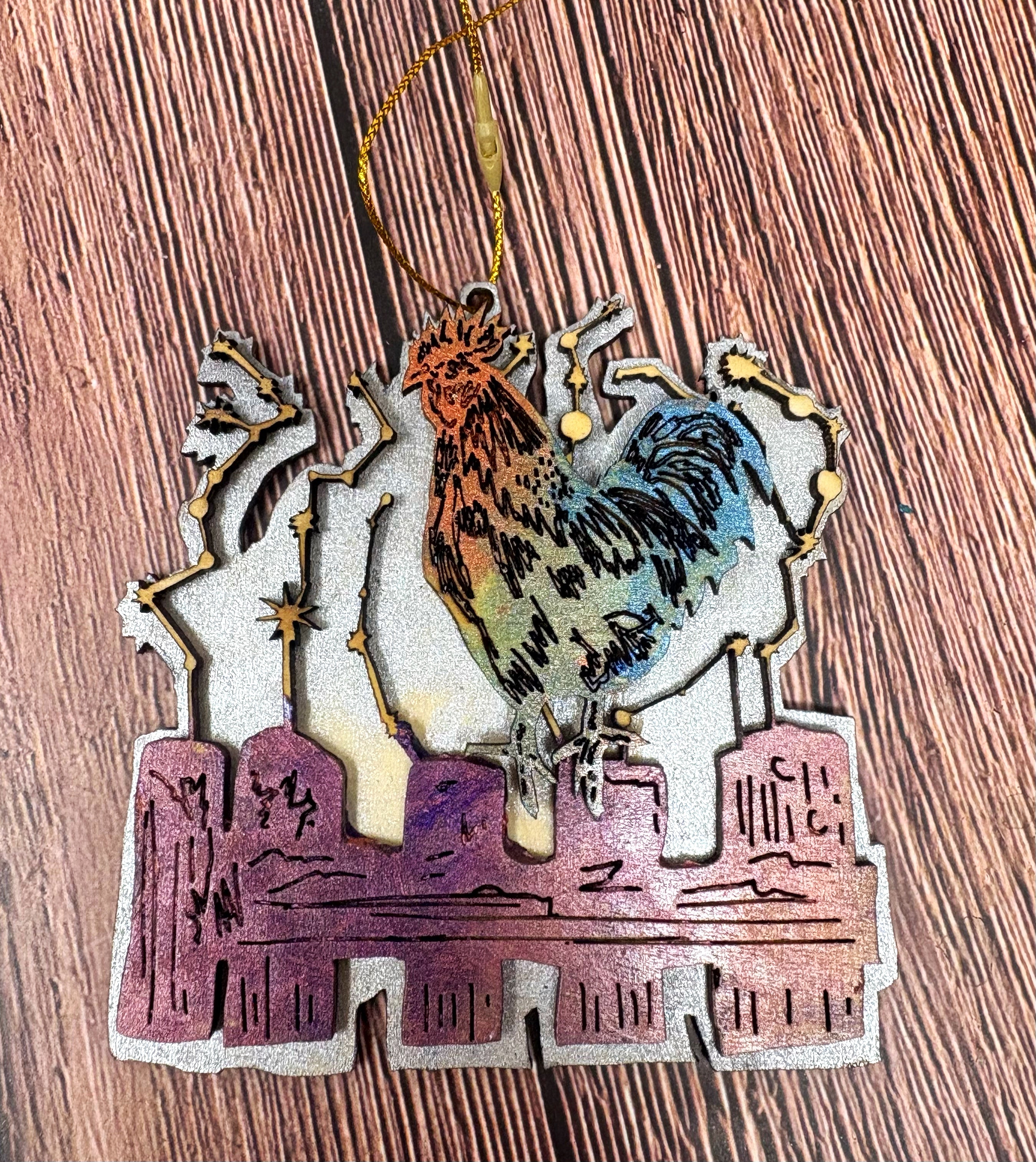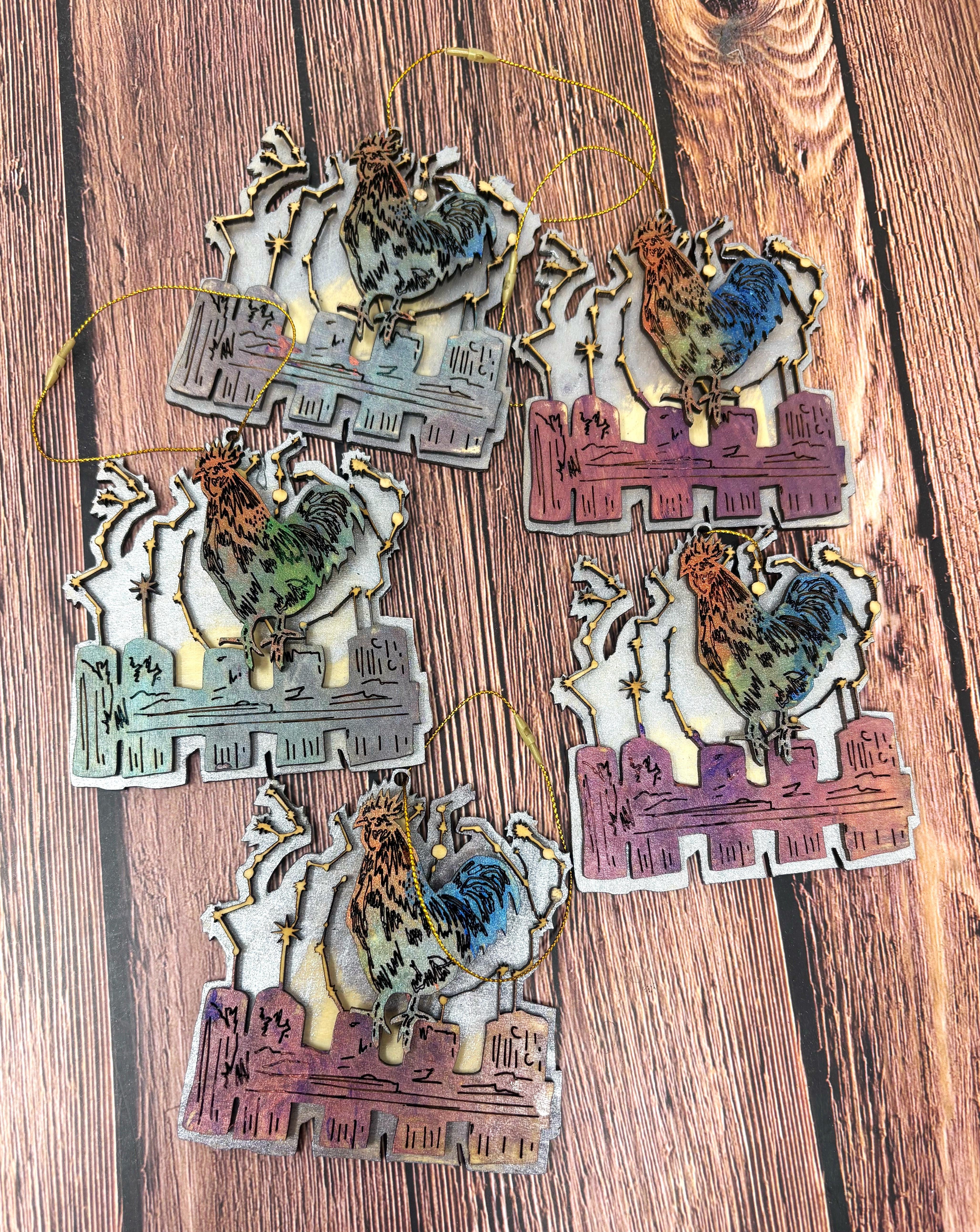 I bought a laser! I hand draw the design of each ornament, send it through a program for the laser to cut, paint the layers, glue the layers and assemble each ornament individually for you!