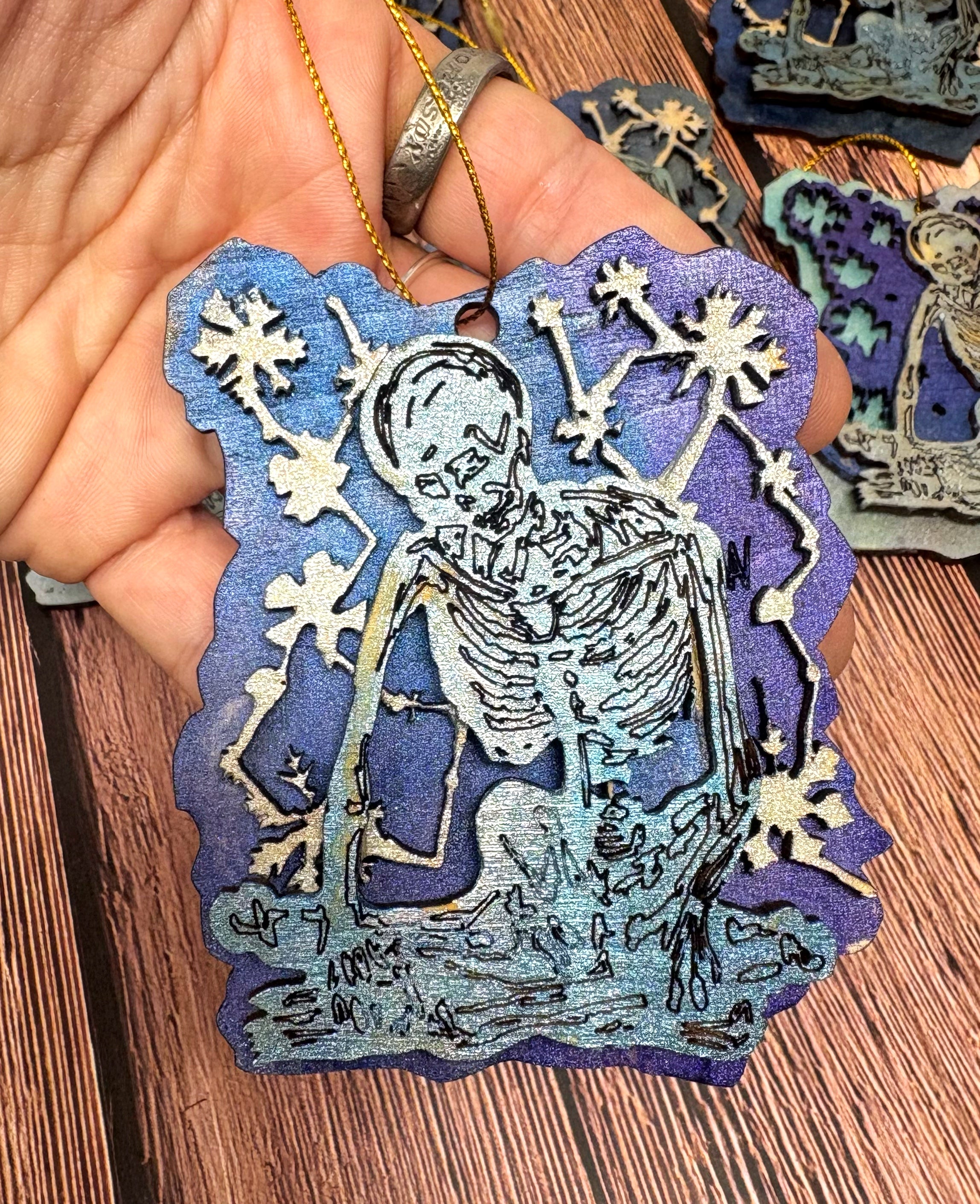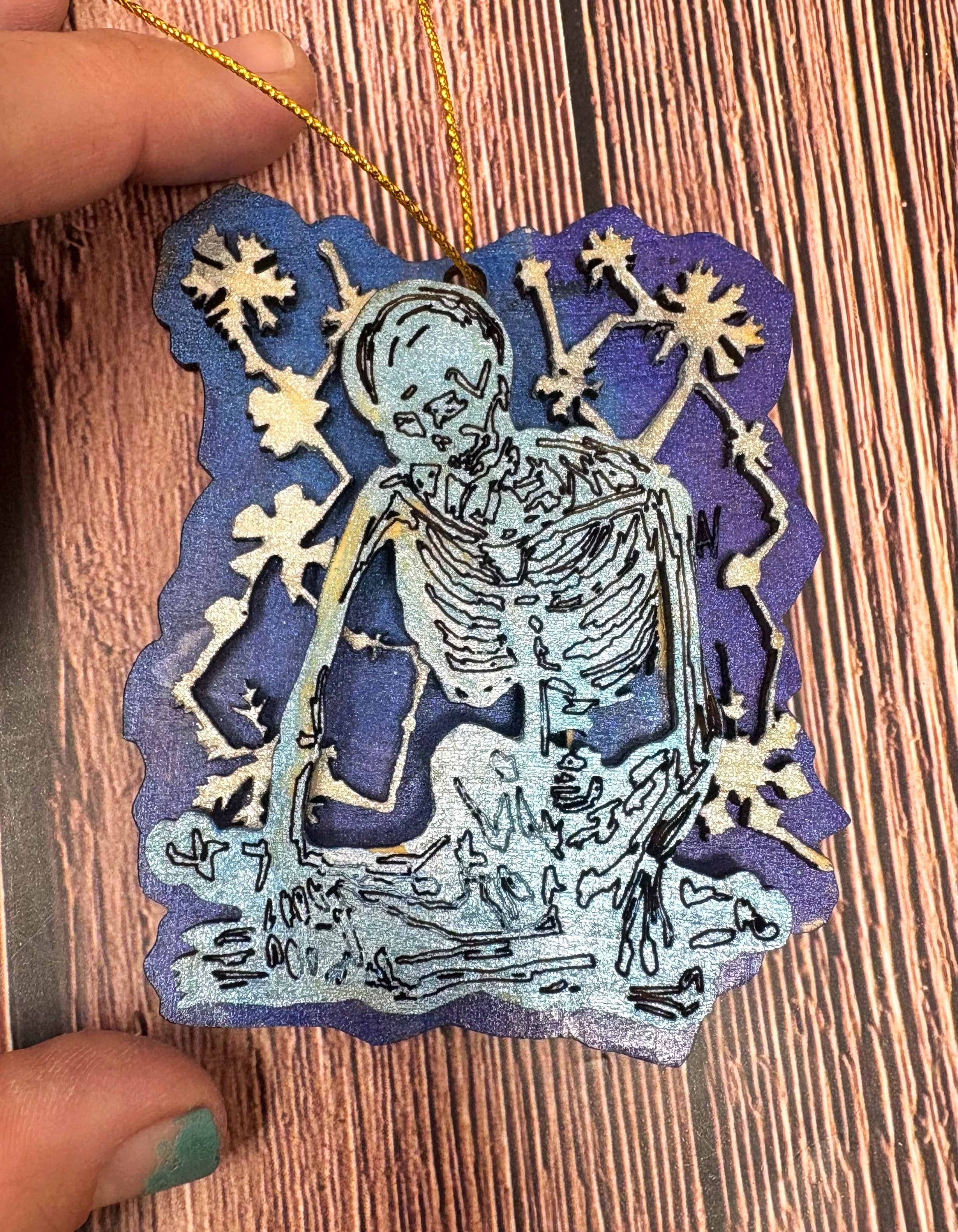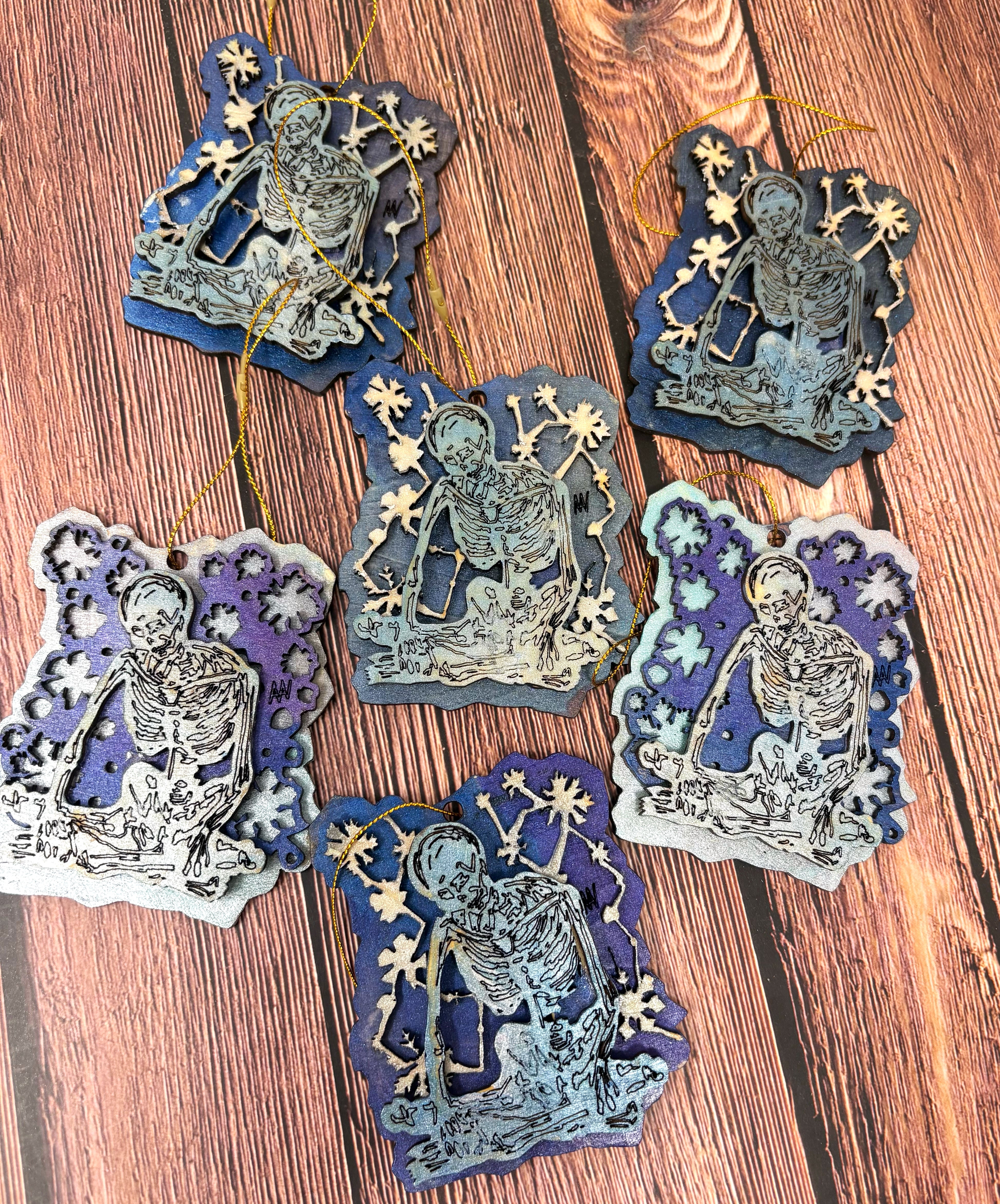 I bought a laser! I hand draw the design of each ornament, send it through a program for the laser to cut, paint the layers, glue the layers and assemble each ornament individually for you!