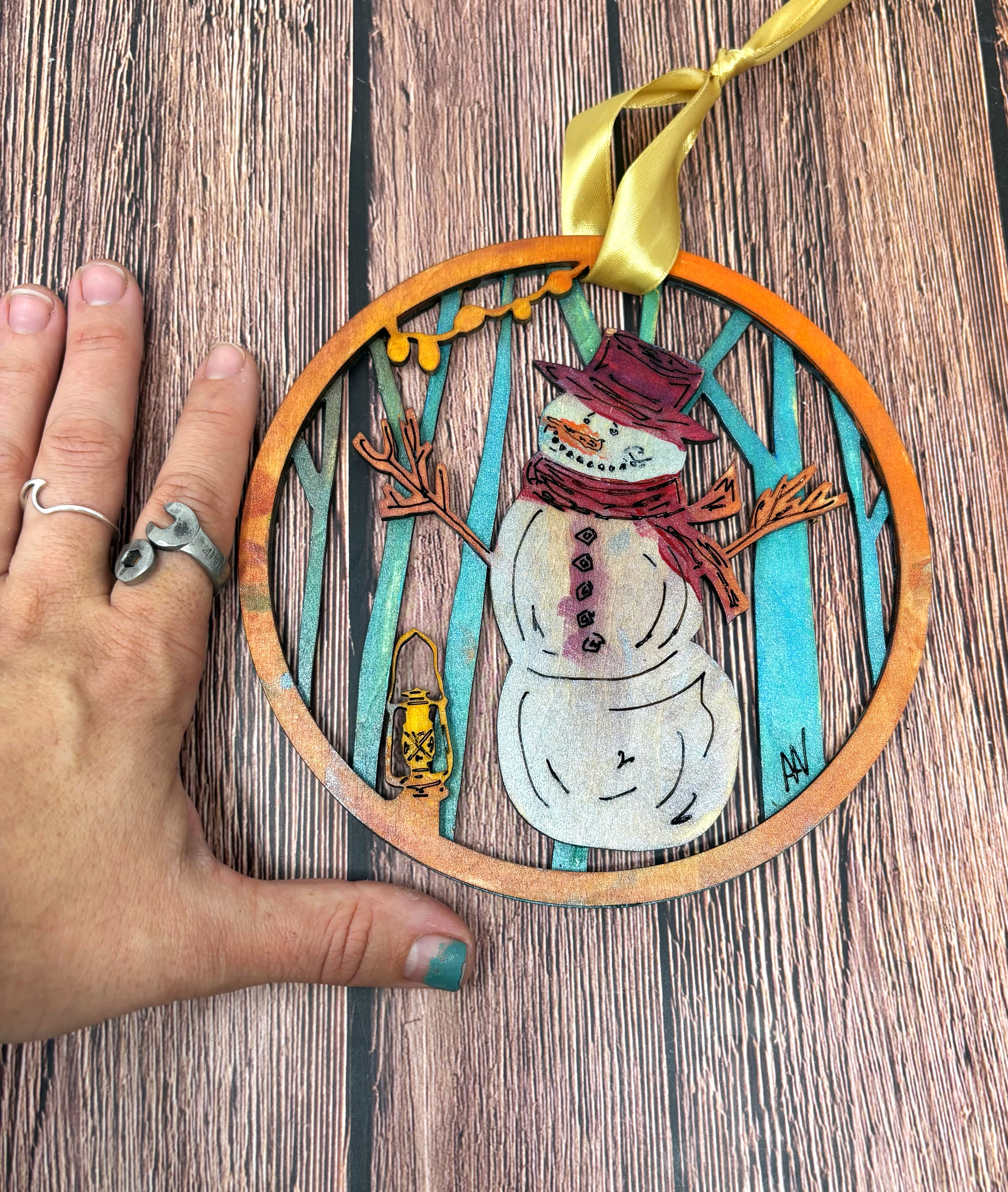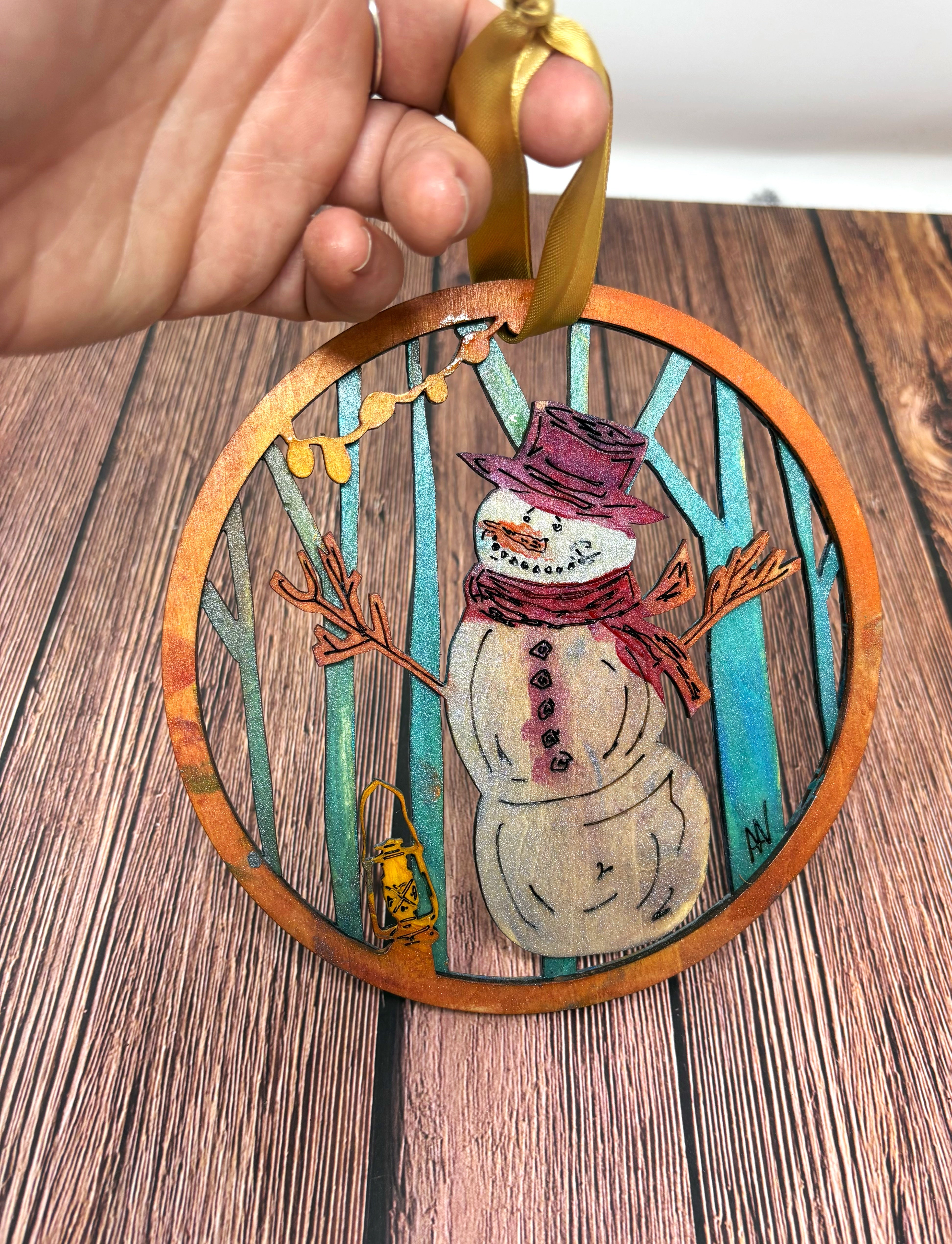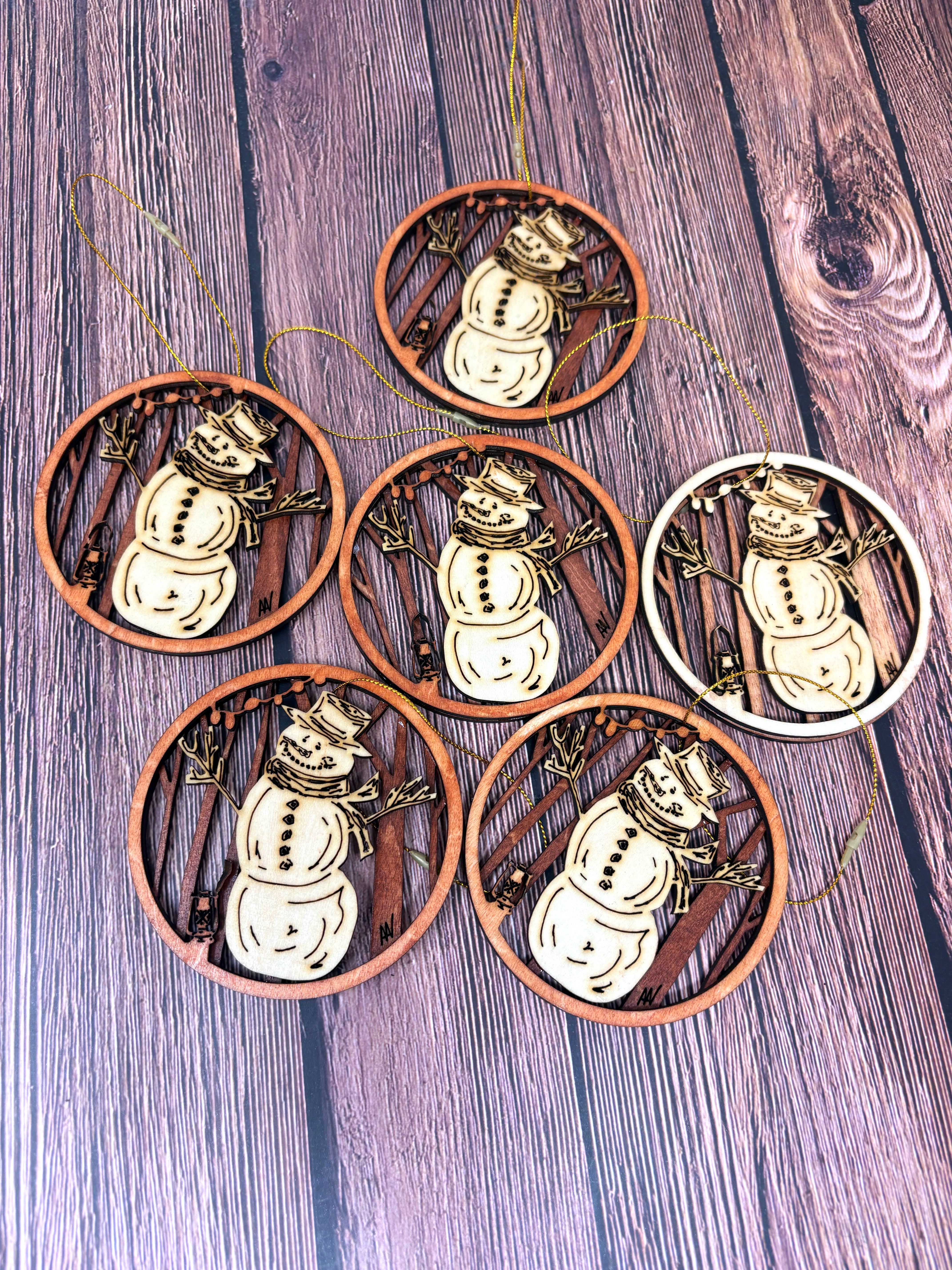 I bought a laser! I hand draw the design of each ornament, send it through a program for the laser to cut, paint the layers, glue the layers and assemble each ornament individually for you!