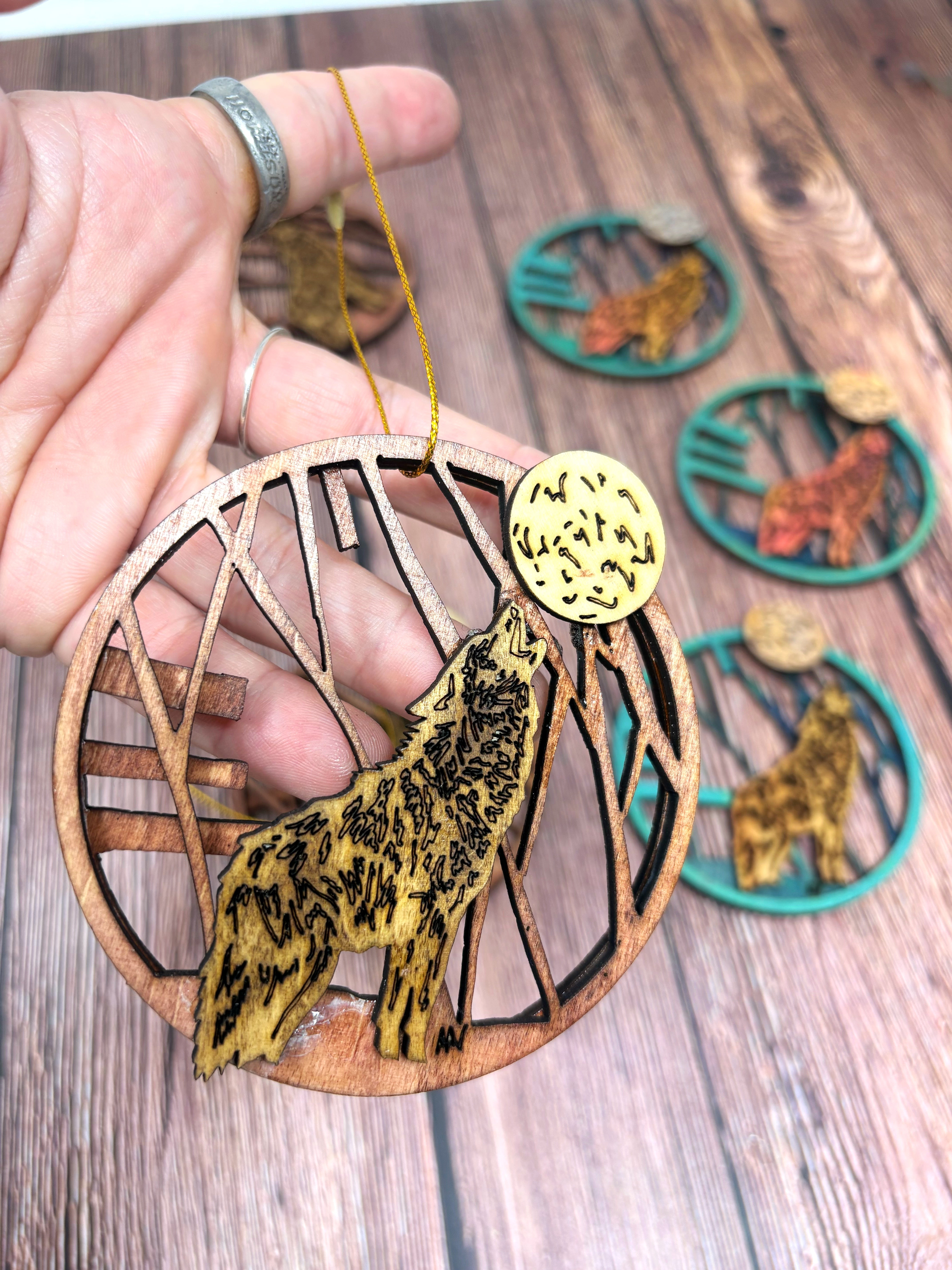 I bought a laser! I hand draw the design of each ornament, send it through a program for the laser to cut, paint the layers, glue the layers and assemble each ornament individually for you!